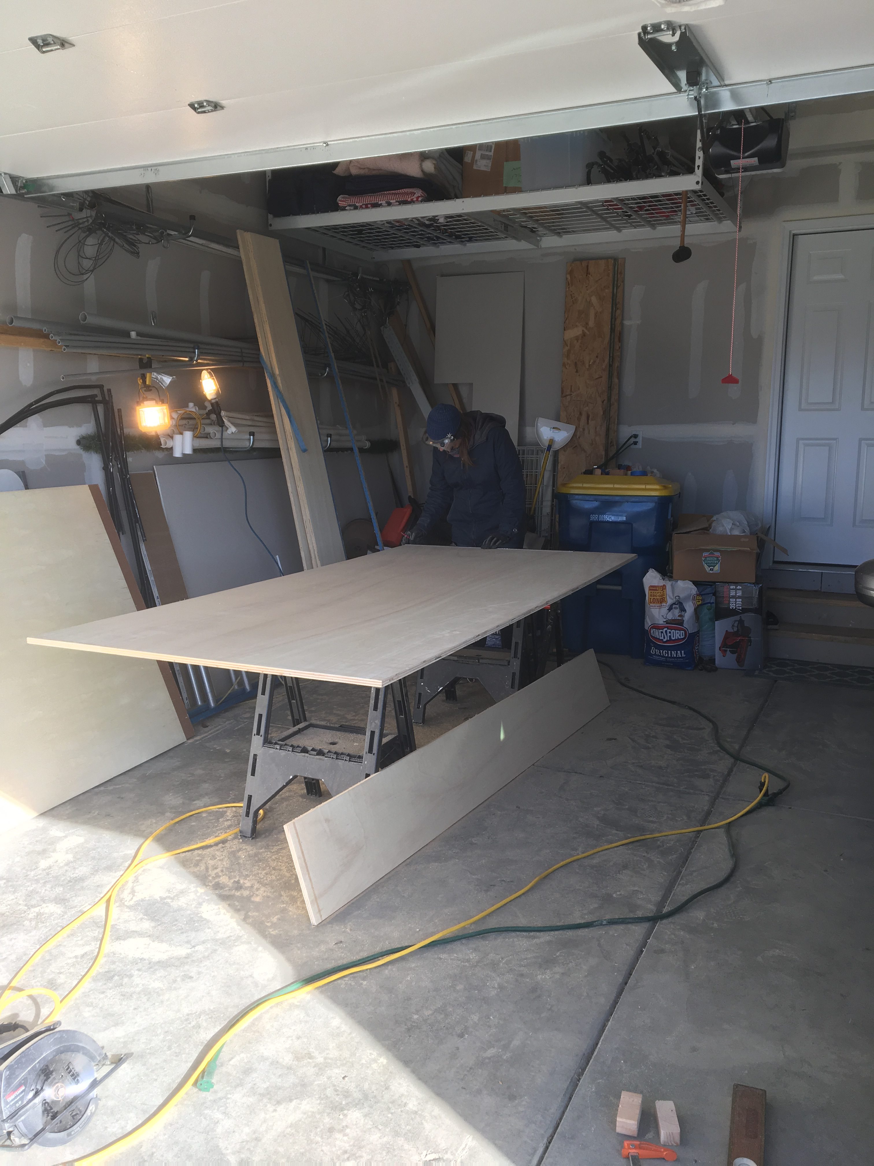 Remember to be smart with working with multiple 4×8 sheets of heavy plywood. They are very heavy and can easily slip, slide, or tip over and injure someone if care and teamwork isn’t used.